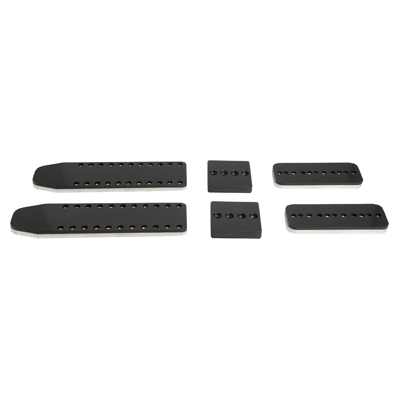These aluminum Race Plates jack your bindings up 3/8" to get a racer's carve, and allow you to easily shift your binding forward or back, or between skis.  3/8" aluminum/plastic sandwich with material hollowed out of the base to save weight.  Two forward positions, and two rearward positions.  420g per set.  Includes an additional stomp plate to support the Outlaw or Bandit's slide block in the center where it would normally make contact with the ski.  Machine screws included.  Works with Outlaw X,  Bandit,  Axl, and Vice bindings.  The machine screws will not work with the HammerHead or BombShell.  Not recommended for Lynx.