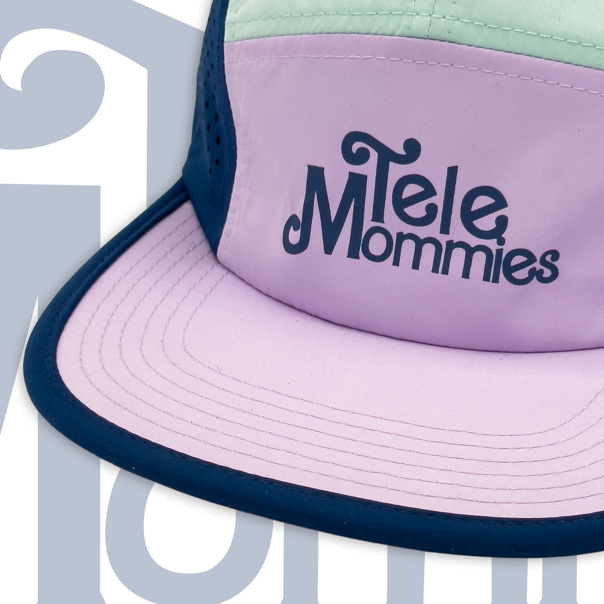 Introducing the "Tele Mommies" athletic 5-panel technical cap a lightweight "get after it" cap ft. breathable mesh sides, a moisture wicking sweat band, and a sinch strapback! As a bonus, it can fit nicely under your helmet for an extra boost of that Tele Mommies style, glitter not included.